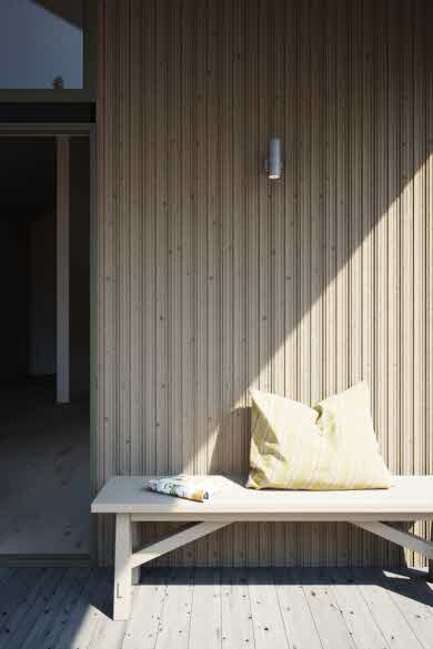 – Moderna träpaneler har gett oss ett nytt verktyg för exteriöra uttryck där vi kan jobba med så mycket mer än bara kulör, säger hon och fortsätter: