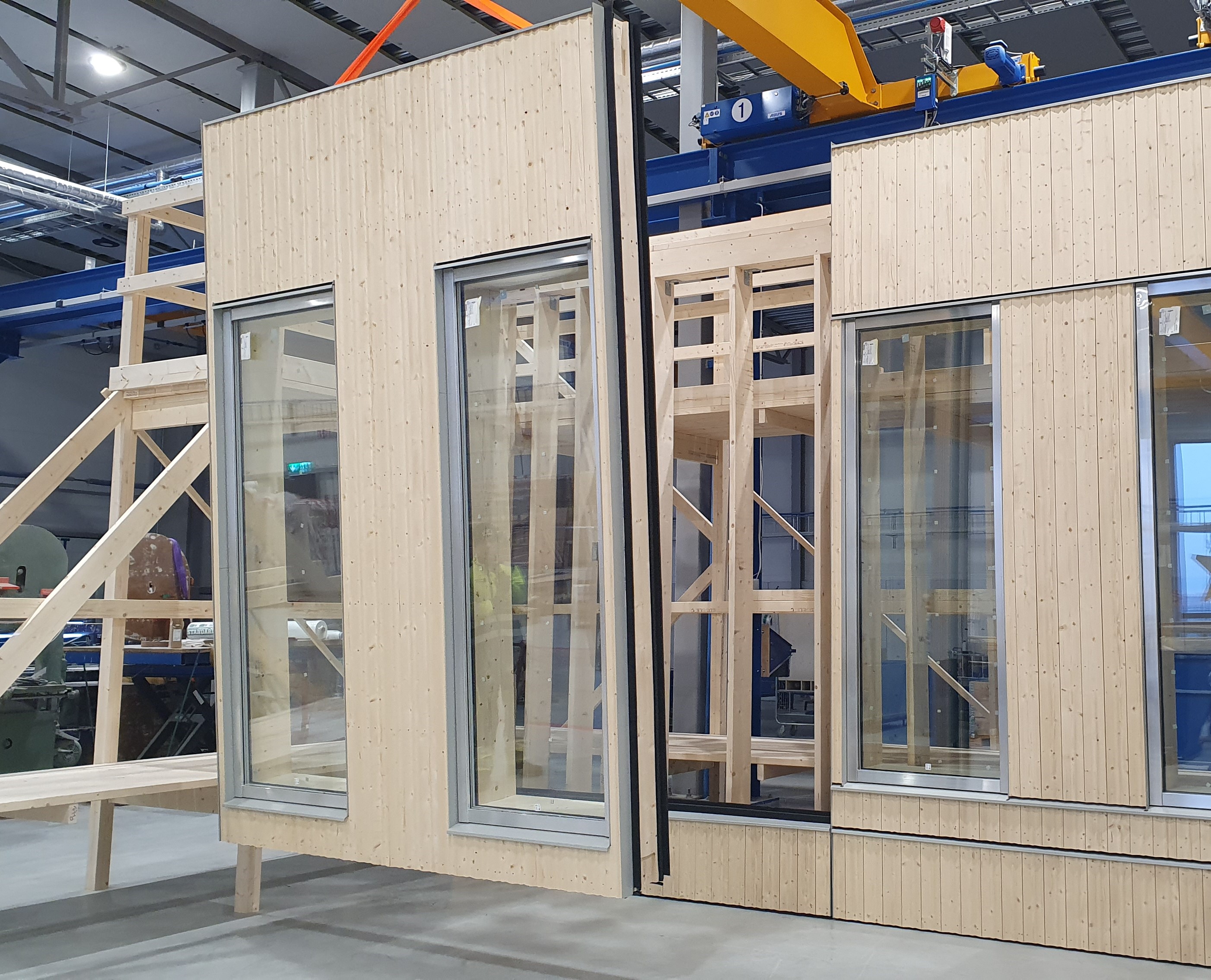- Systemet levereras med komplett fasad utan behov av utvändig komplettering efter montage.