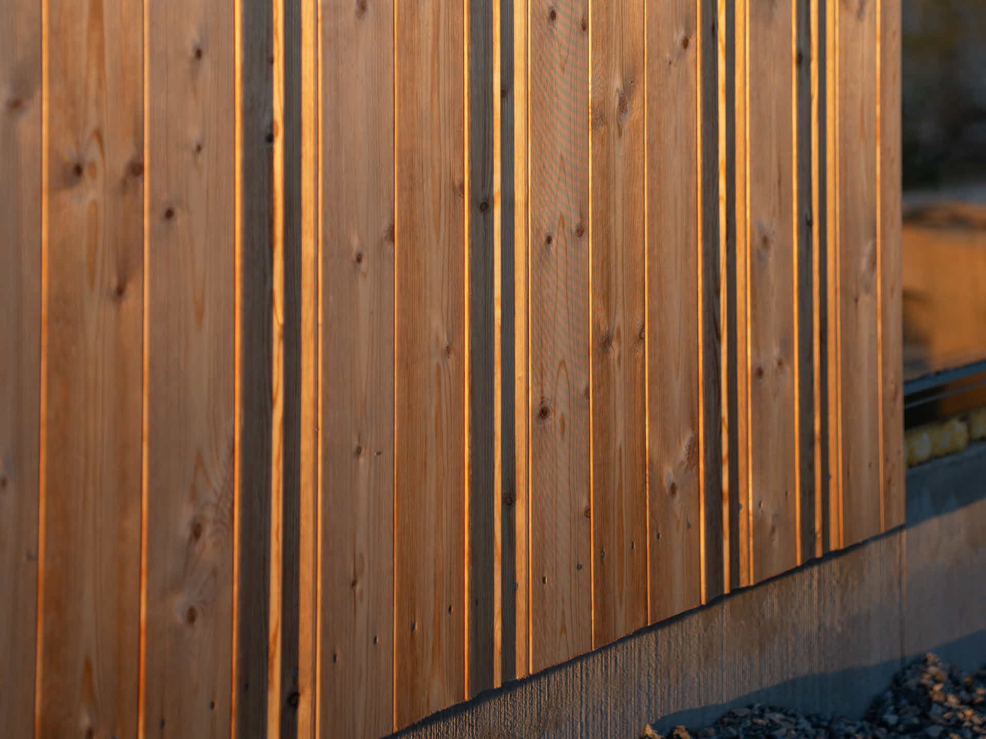 SCA Lynx A1 och den finrillade profilen kombineras på detta hus. Kunden har valt kärnfuru, så panelen kommer gråna naturligt med tiden.